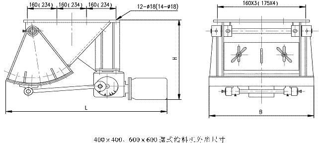 擺式給料機適用于選礦、煤炭、化工及其他部門,將顆粒狀物料從貯料槽經漏斗輸送給各種類型的受料裝置。擺式給料機不適宜輸送干粉狀或太大粒度的物料,否則會出現粉塵污染及出口堵塞現象。技術參數